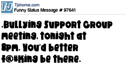 - # 97681 Bullying Support Group meeting, tonight at 8. You'd better f*cking be there.