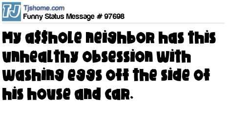 X says My a$$hole neighbor has this unhealthy obsession with washing eggs off the side of his house and car.