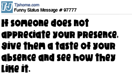 - # 99072 If someone doesn't appreciate your presence, make them appreciate your absence.