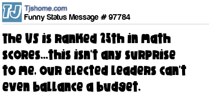 X The US is ranked 25th in math scores...this isn't any surprise to me, our elected leaders can't even ballance a budget.