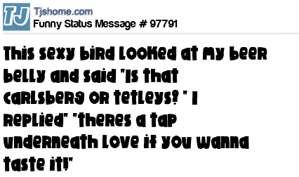 X This sexy bird looked at my beer belly and said "Is that carlsberg or tetleys? " I replied" "theres a tap underneath love if you wanna taste it!"
