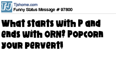 X is What starts with P and ends with ORN? Popcorn your pervert!