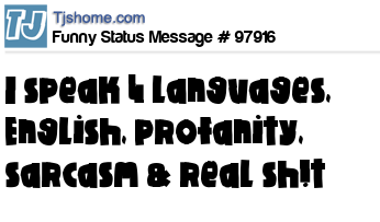 - # 99257 I speak 4 languages: English, Profanity, Sarcasm, & Real Sh!t..