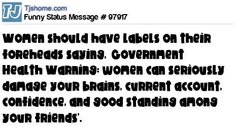 X is Women should have labels on their foreheads saying, ‘Government Health Warning: women can seriously damage your brains, current account, confidence, and good standing among your friends'.