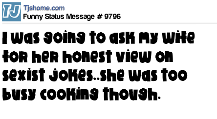 X I was going to ask my wife for her honest view on sexist jokes..she was too busy cooking though.