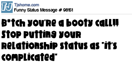 - # 101494 B!tch, You're a booty call, stop putting your relationship status as "it's complicated."