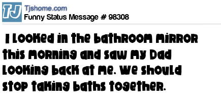 X says I looked in the bathroom mirror this morning and saw my Dad looking back at me. We should stop taking baths together.