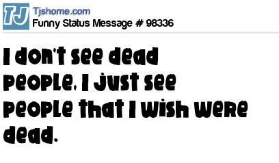 - # 147012 I see dead people. No wait, I take that back. I see people I want dead.