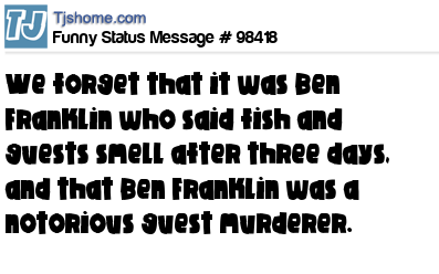 X says We forget that it was Ben Franklin who said fish and guests smell after three days, and that Ben Franklin was a notorious guest murderer.