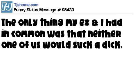 X The only thing my ex & I had in common was that neither one of us would suck a d!ck.