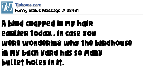 X A bird crapped in my hair earlier today,,, in case you were wondering why the birdhouse in my back yard has so many bullet holes in it.
