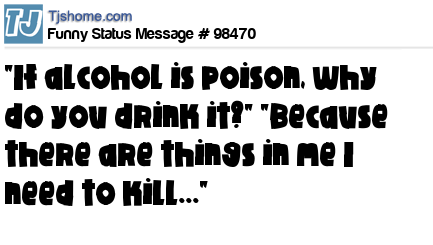 X "If alcohol is poison, why do you drink it?" "Because there are things in me I need to kill..."