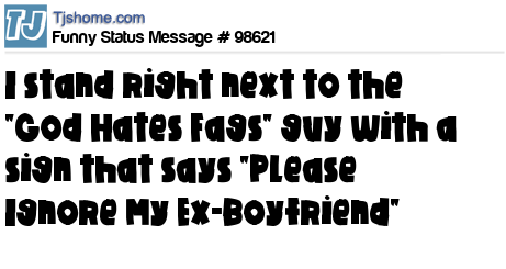 X is I stand right next to the "God Hates Fags" guy with a sign that says "Please Ignore My Ex-Boyfriend"