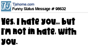 X Yes, I hate you,,, but I'm not in hate, with you.