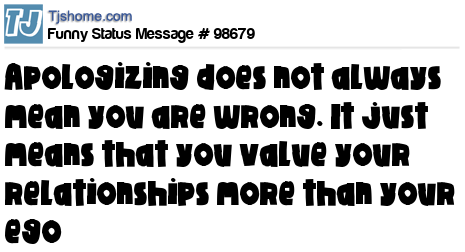 - # 90114 apologizing doesnt always mean ur wrong and the other person is right, just means you value ur realationship more then your ego.
