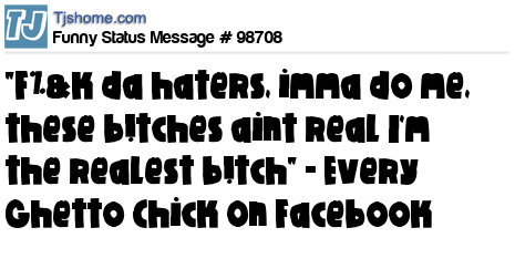 X "F%&k da haters, imma do me, these b!tches aint real I'm the realest b!tch" - Every Ghetto Chick On Facebook