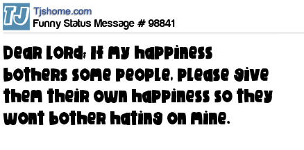 X says Dear Lord; If my happiness bothers some people, please give them their own happiness so they wont bother hating on mine.