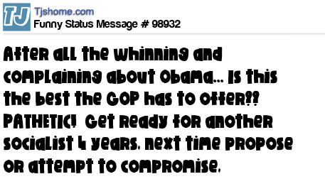 X is After all the whinning and complaining about Obama... Is this the best the GOP has to offer?? PATHETIC! Get ready for another socialist 4 years, next time propose or attempt to compromise,