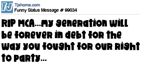 X is RIP MCA...my generation will be forever in debt for the way you fought for our right to party...