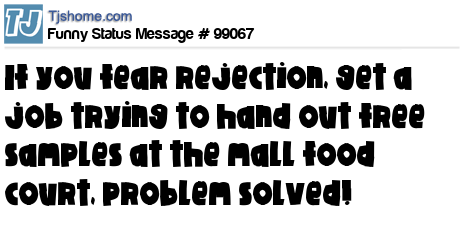X is If you fear rejection, get a job trying to hand out free samples at the mall food court, problem solved!