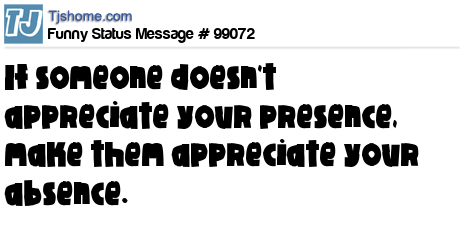- # 97777 If someone does not appreciate your presence, give them a taste of your absence and see how they like it.