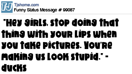 - # 80736 Teenage girls: stop making the duck face in all your photos. I don't know who told you it was attractive cause it isn't. You look quite stupid and immature, not to mention ugly. Mostly stupid. Real stupid.