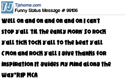 X Well on and on and on and on I can't stop y'all 'til the early morn' So rock y'all tick tock y'all to the beat y'all C'mon and rock y'all I give thanks for inspiration It guides my mind along the way*RIP MCA