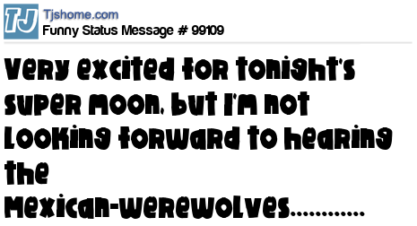 X Very excited for tonight's super moon, but I'm not looking forward to hearing the Mexican-werewolves............
