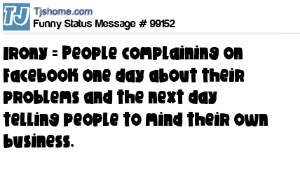 - # 99268 Irony: People complaining on Facebook one day about their problems and the next day telling people to mind their own business.