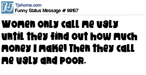 - # 167355 Women call me ugly until they find out how much money I make .... Then they call me ..... ugly and broke.