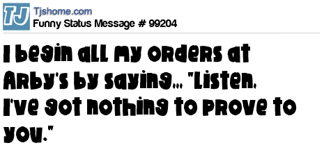 X I begin all my orders at Arby's by saying,,, "Listen, I've got nothing to prove to you."