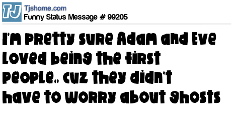 X I'm pretty sure Adam and Eve loved being the first people,, cuz they didn't have to worry about ghosts
