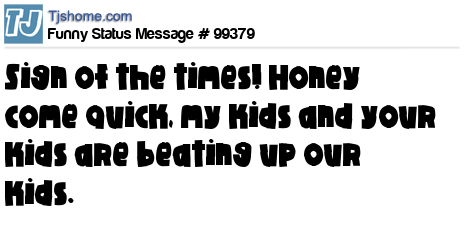 X Sign of the times! Honey come quick, my kids and your kids are beating up our kids.