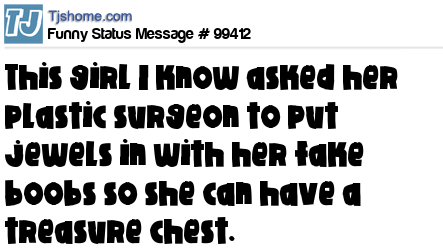 X This girl I know asked her plastic surgeon to put jewels in with her fake boobs so she can have a treasure chest.