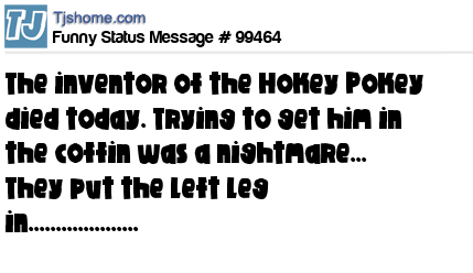 X The inventor of the Hokey Pokey died today. Trying to get him in the coffin was a nightmare... They put the left leg in....................