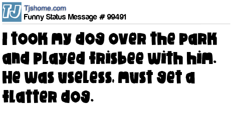 - # 22830 I took my dog for a walk and played Frisbee with him, but he was useless. I really need to get a flatter dog.