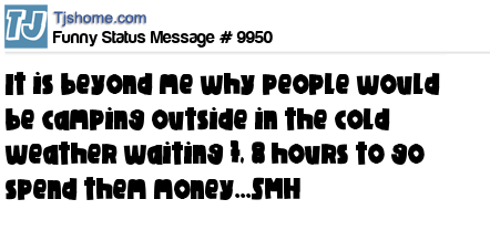 X It is beyond me why people would be camping outside in the cold weather waiting 7, 8 hours to go spend them money...SMH