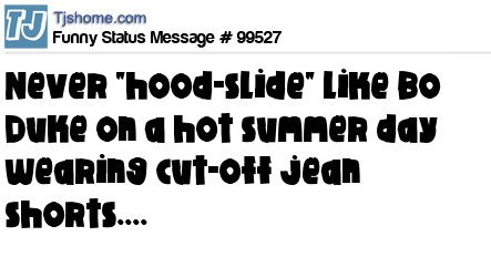 X Never "hood-slide" like Bo Duke on a hot summer day wearing cut-off jean shorts....