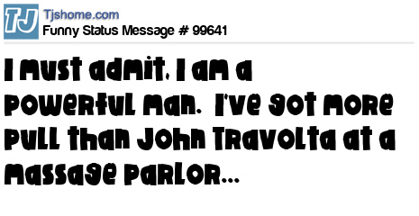 X is I must admit, I am a powerful man. I've got more pull than John Travolta at a massage parlor...