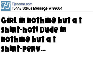 X says Girl in nothing but a t shirt-hot! Dude in nothing but a t shirt-perv...
