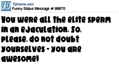 X You were all the elite sperm in an ejaculation. So, please, do not doubt yourselves - you are awesome!