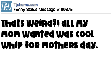 X  thats weird?! all my  mom wanted was cool whip for mothers day.