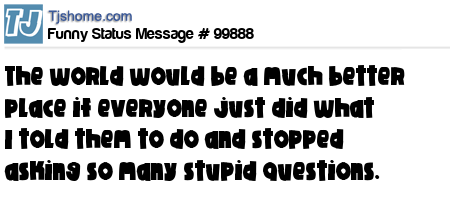 X The world would be a much better place if everyone just did what I told them to do and stopped asking so many stupid questions.