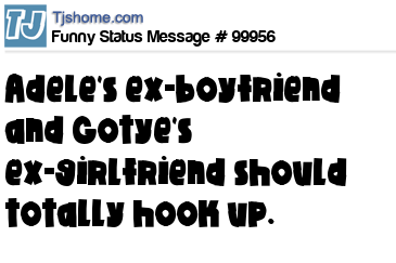 X Adele's ex-boyfriend and Gotye's ex-girlfriend should totally hook up.