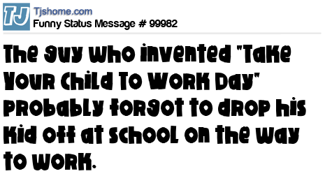 X is The guy who invented "Take Your Child To Work Day" probably forgot to drop his kid off at school on the way to work.