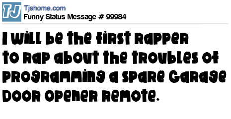X is I will be the first rapper to rap about the troubles of programming a spare Garage Door Opener remote.